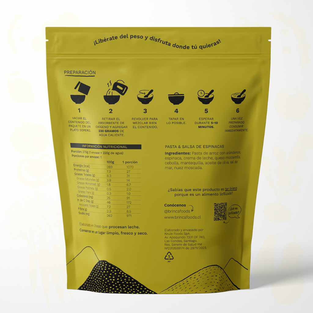 | Sin Aditivos | Sin Conservantes | Vegetariano | Libre de Gluten | 100% Natural | Envase Reciclable | Liofilizado | Livianos