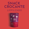 Snack 100% natural, crocante y liviano gracias a su proceso de liofilización. Hecho con frutilla, frambuesa y manzana sin azúcar añadida. Tiene divertidas formas de cascos con las que puedes jugar antes de comer. No necesita refrigeración, es libre de gluten, apto para vegetarianos y una excelente fuente de vitamina C. Ideal para niños desde los 8 meses. Llévalo al colegio, la plaza o el cerro. ¡Un snack saludable y entretenido, donde quieras!