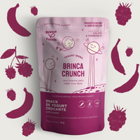 Snack 100% natural, crocante y liviano gracias a su proceso de liofilización. Hecho con mora, plátano y yogurt natural sin azúcar añadida. Tiene divertidas formas de planetas con las que puedes jugar antes de comer. No necesita refrigeración, es libre de gluten, apto para vegetarianos y una excelente fuente de vitamina C y calcio. Ideal para niños desde los 12 meses. Llévalo al colegio, la plaza o el cerro. ¡Un snack saludable y entretenido, donde quieras!